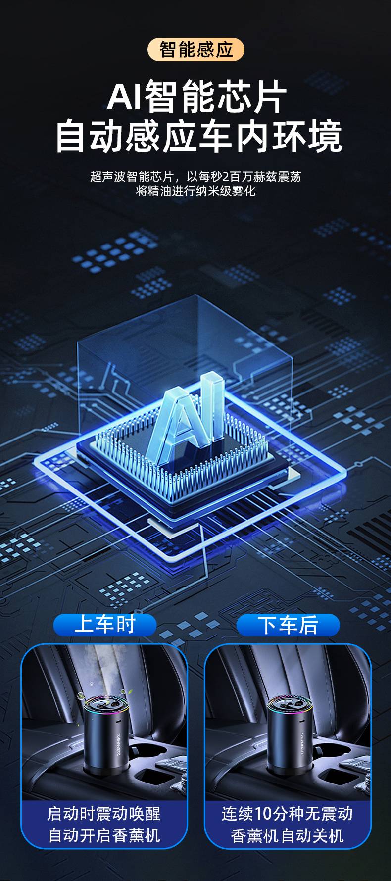 7. Chick cerdas AI cerdas AI kanthi otomatis chip cerdas ultrasonik ing lingkungan mobil, lan atomisasi minyak penting ing nanoscale 2 yuta Hertz per detik